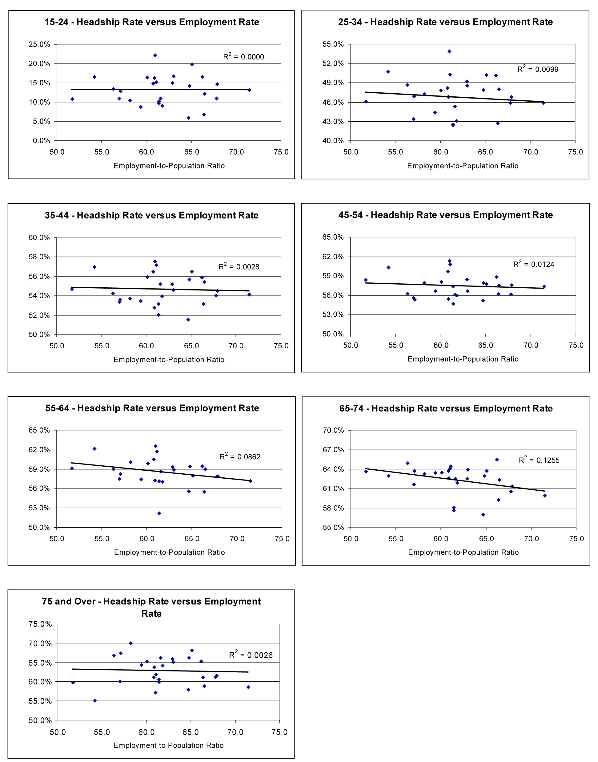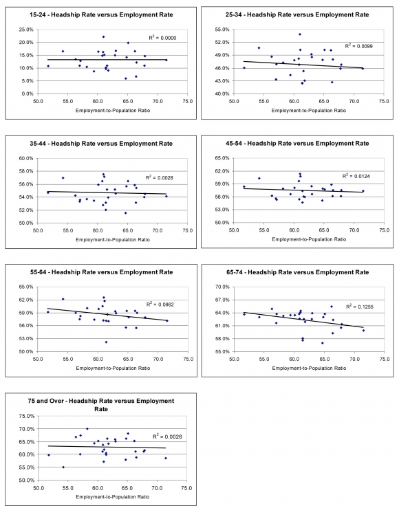 This section explored the relationship between two measures of household formation (age-specific headship rates and the average number of adults per household) and economic conditions.