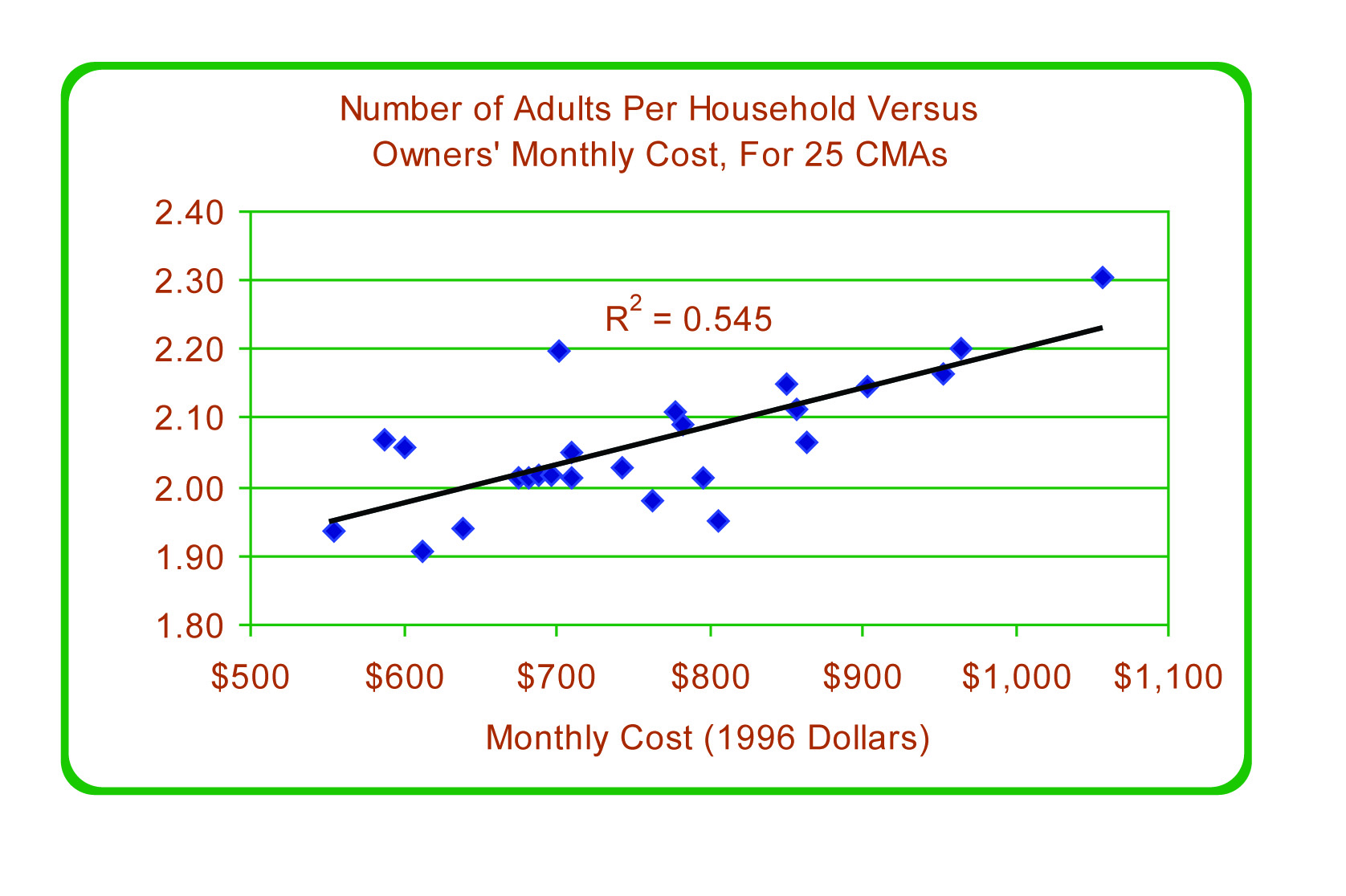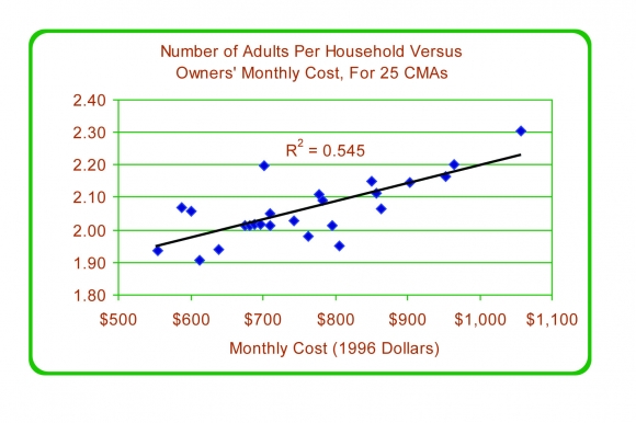 Figure 34: Number of Adults per Household vs. Owners' Monthly Costs, for 25 CMAs