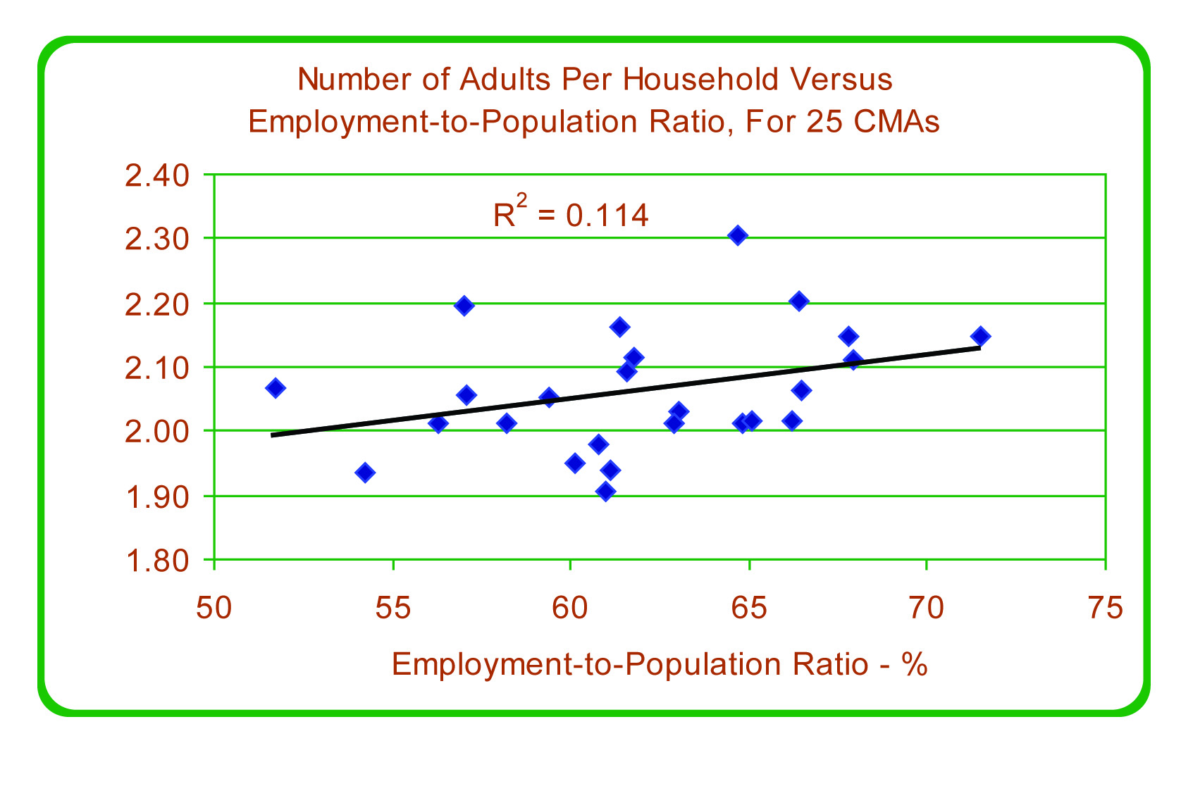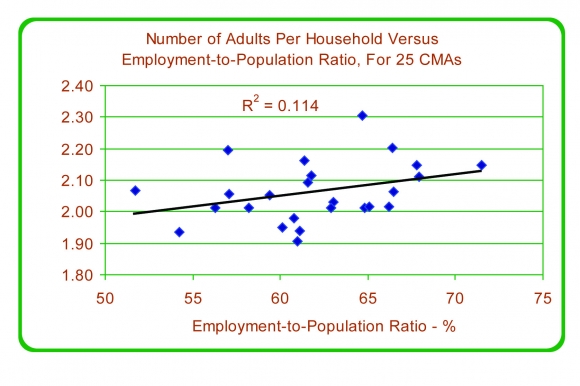 Figure 35: Number of Adults per Household vs. Employment-to-Population Ratio, for 25 CMAs