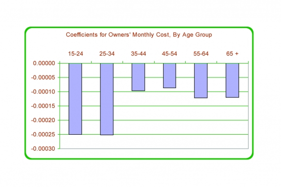 Once again, the analysis indicates that household formation (in this case measured as the number of adults per household) is affected by housing costs and employment opportunities, and the influences of these two economic variables are in the expected direction. However, once again, the economic variables do not do a good job of explaining changes that occurred between 1996 and 2001.