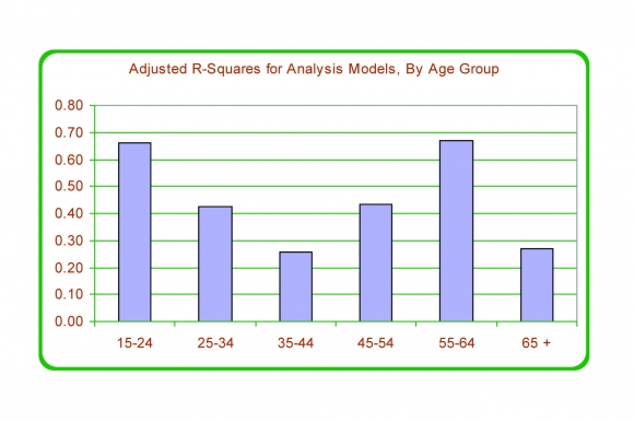 Combining these economic effects with anticipated shifts in the age structure of the population, the average number of adults per household in the GTA should have increased by a small amount -- 0.007 adults per household -- and the average number of adults per household should be about 2.299. The actual increase was larger than predicted (0.020 people, almost triple the predicted amount) and the average household size is larger than predicted, at an estimate of 2.312 versus the predicted 2.299.