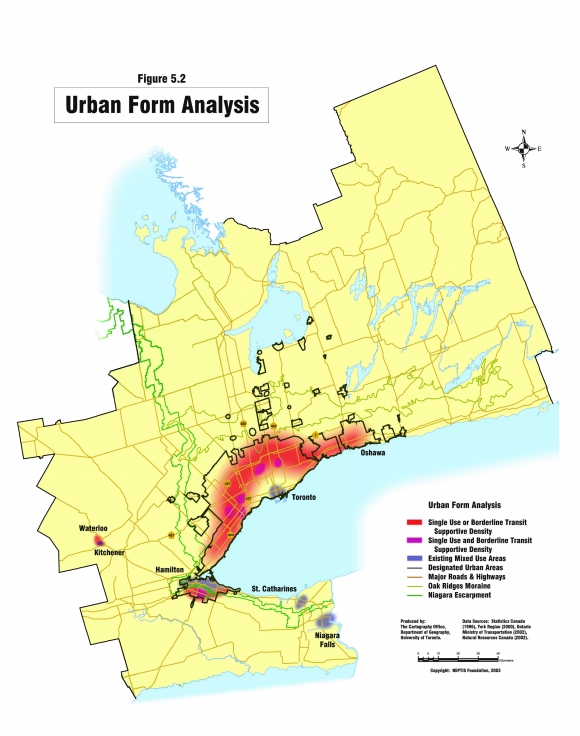 To a lesser extent there is overlap (of urban form and capacities) in a band stretching from Oakville through Toronto's inner suburbs. Strategically deployed, directing growth to these locations can also bring about significant benefits.