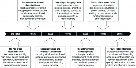 Many researchers have examined the influence of socio-technical processes (including innovation in technologies for moving information and people) on the development of cities and metropolitan regions (Adams, 1970; Audirac, 2002; Castells, 2002; Bourne, 2007). Less attention has been paid to the transformative impact of the retail economy on the size and shape of city-regions.