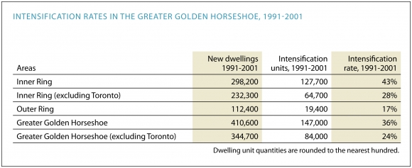 Figure 4: Intensification rates in the Greater Golden Horseshoe, 1991-2001