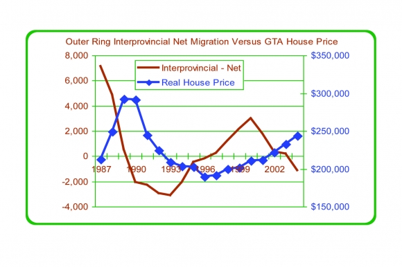 Figure 18: Outer Ring Interprovincial Net Migration vs. GTA House Prices, 1987 to 2004